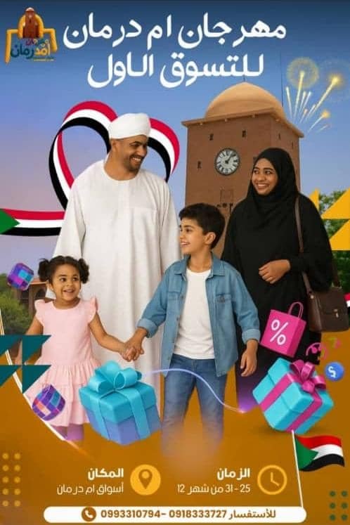 اكتملت الترتيبات لمهرجان امدرمان الاول للتسوق والذي سيقام باسواقنا بامدرمان في الفترة من ٢٥ ديسمبر وحتي ال٣١ ديسمبر من التاسعة صباحاً وحتي الثانيه ظهرا، ومن الرابعه عصرا وحتي العاشرة ، بمشاركة العديد من كبري الشركات والمصانع والبنوك ورجال الاعمال يتخلل المهرجان احتفالات ومسابقات ومفاجاءات ،وايضا يتضمن المعرض