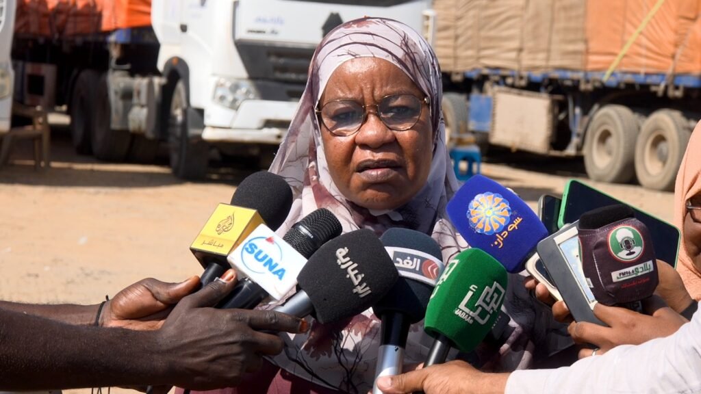 وقالت في تصريحات صحفية في موقع تجمع القوافل بقاعدة الدفاع الجوي اليوم بمدينة بورتسودان أن الحكومة في ذكري الاستقلال المجيد تهنيء الشعب السوداني وقواته المسلحة وحلفاءها في كافة جبهات القتال وتحي صبر وصمود الشعب وقواته المسلحة في هذه المرحلة وتعضد روح التكافل والتعاضد داخليا وخارجيا لذلك جددت فتح معبر ادري لمدة ثلاثة شهور حتي تنساب قوافل المساعدات للمتضررين لان الحكومة لاتستثني اي منطقة حتي تلك التي تقع في مناطق سيطرة المليشيا.